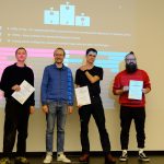 Im Anschluss an die Keynote folgten 15 kurze Poster Pitches, in denen die Teilnehmer:innen ihre Posterbeiträge in je 60 Sekunden vorstellten. Die thematische Bandbreite war beeindruckend: von KI-gestützten Analysen über digitale Editionen bis hin zu innovativen Visualisierungsansätzen. Die darauf folgende Poster-Session, die bis 16 Uhr andauerte, bot eine exzellente Gelegenheit zum Austausch, thematischer Vertiefung und zur Vernetzung. Die Besucher:innen hatten die Möglichkeit, die Projekte genauer zu erkunden, Fragen zu stellen und mit den Forscher:innen ins Gespräch zu kommen. Alle Gäste konnten zudem für das beste Poster in den beiden Kategorien Thema und Design abstimmen. Am Ende der Veranstaltung moderierte Uwe Kretschmer die Preisverleihung, auf der die drei besten Poster jeweils mit einem Buchpreis prämiert wurden, was den Abschluss des Tages bildete. Und das sind die Gewinner: